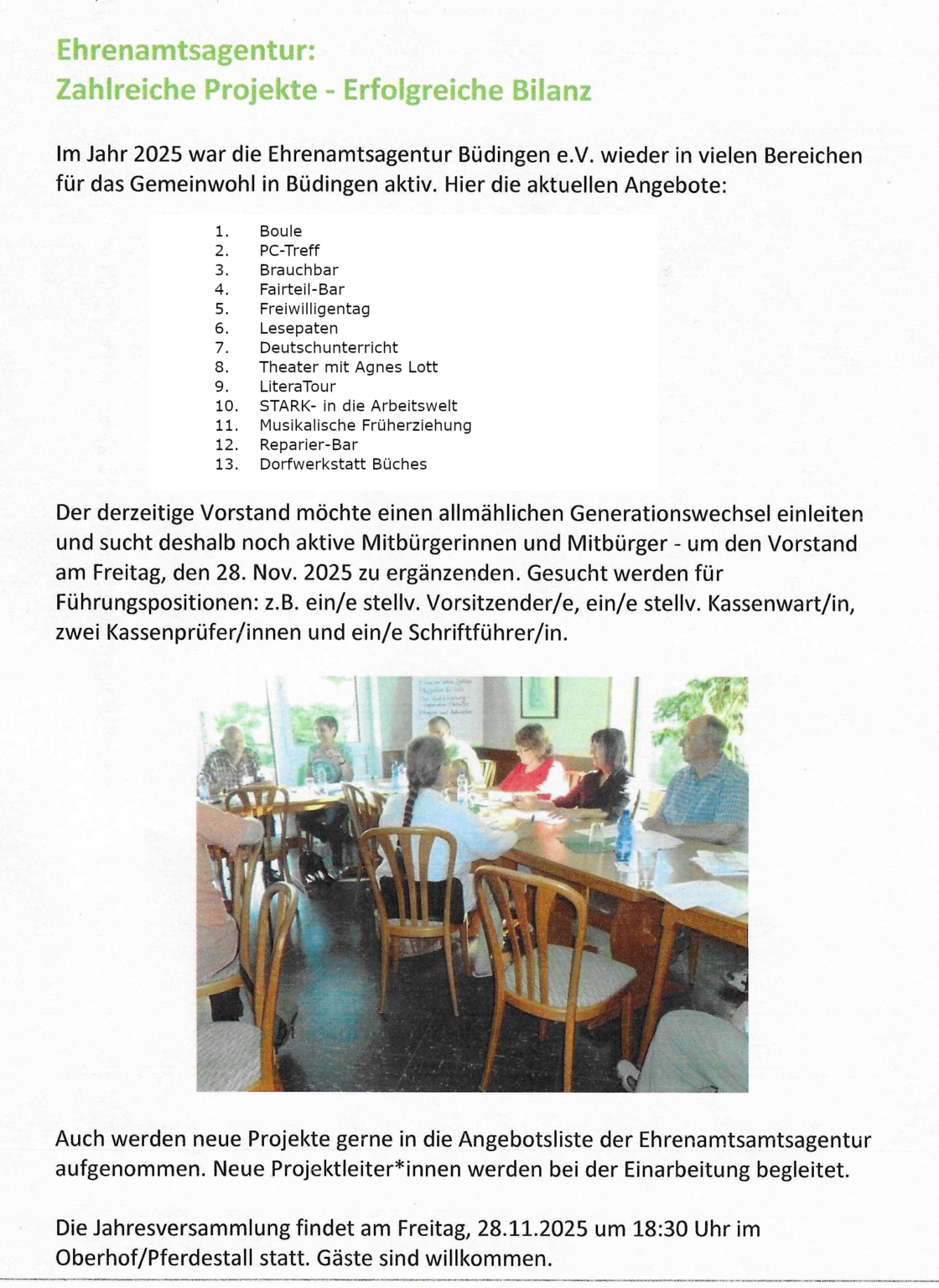 Die Ehrenamtsagentur “Aktiv in Büdingen” wurde als gemeinnütziger Verein 2013 gegründet. Wir treten aktiv für Toleranz und Weltoffenheit ein und schätzen die Vielfalt, der Menschen, die in unterschiedlicher Weise unsere Stadt Büdingen bereichern und sich für Andere einsetzen.