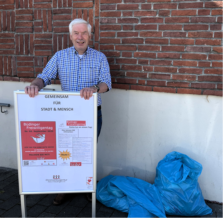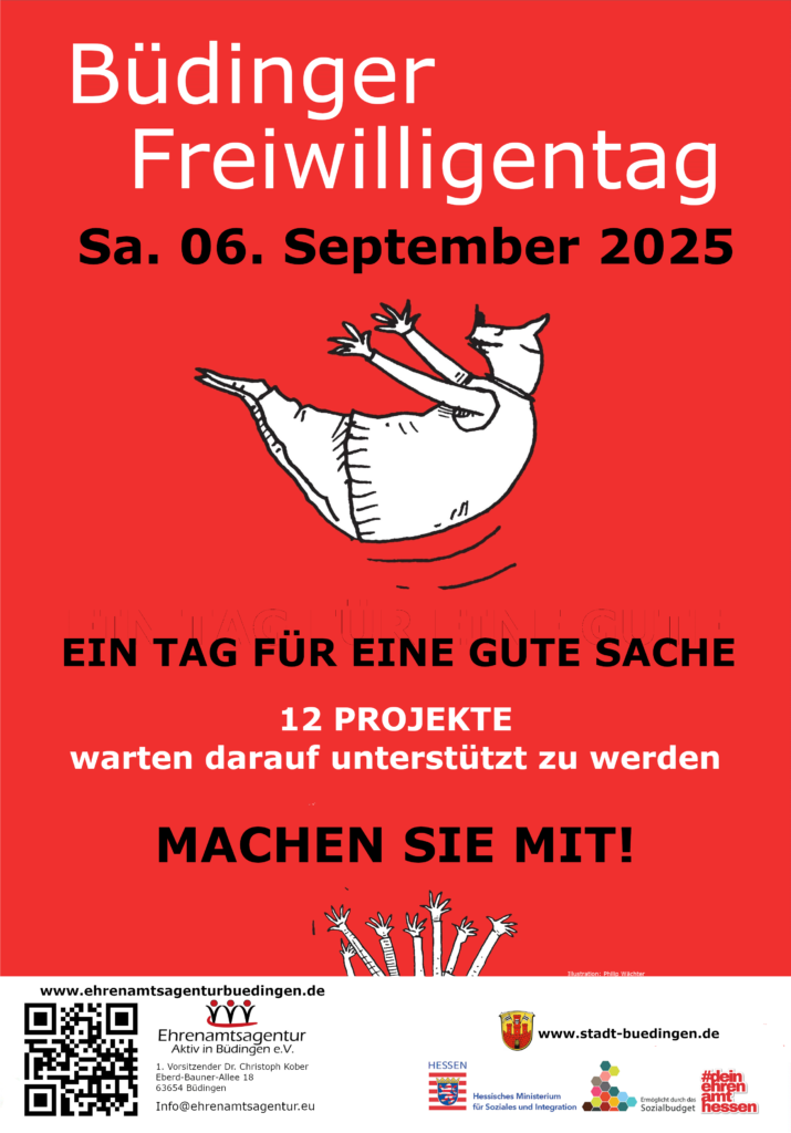 Am Freiwilligentag geht es mehr als nur um Arbeitseinsätze, auch wird damit die Identifikation im dem Wohnort gestärkt. Es ist ein Aktionstag der Ehrenamtsagentur „ Aktiv in Büdingen “ sowie der Stadt Büdingen. Alle Bürgerinnen und Bürger in Büdingen und Ortsteilen sind eingeladen , an diesem Tag ins Ehrenamt hineinzuschnuppern und sich für die Allgemeinheit zu engagieren!